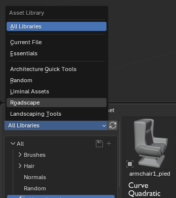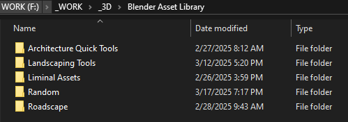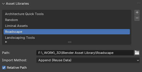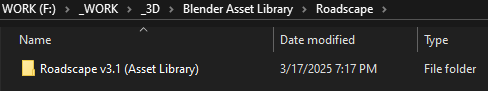 Paste it into your Blender’s asset library recently created “Roadscape” folder like so: