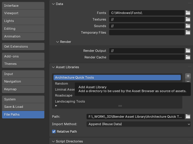 Then go back to Blender > Edit > Preferences > File Paths > Asset Library.
