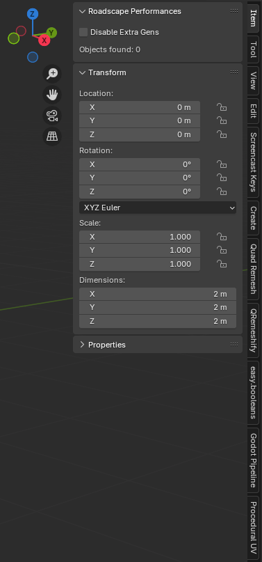 After restart, you should see the Roadscape Performances tab inside the Item tab of your 3D Viewport’s N Panel.